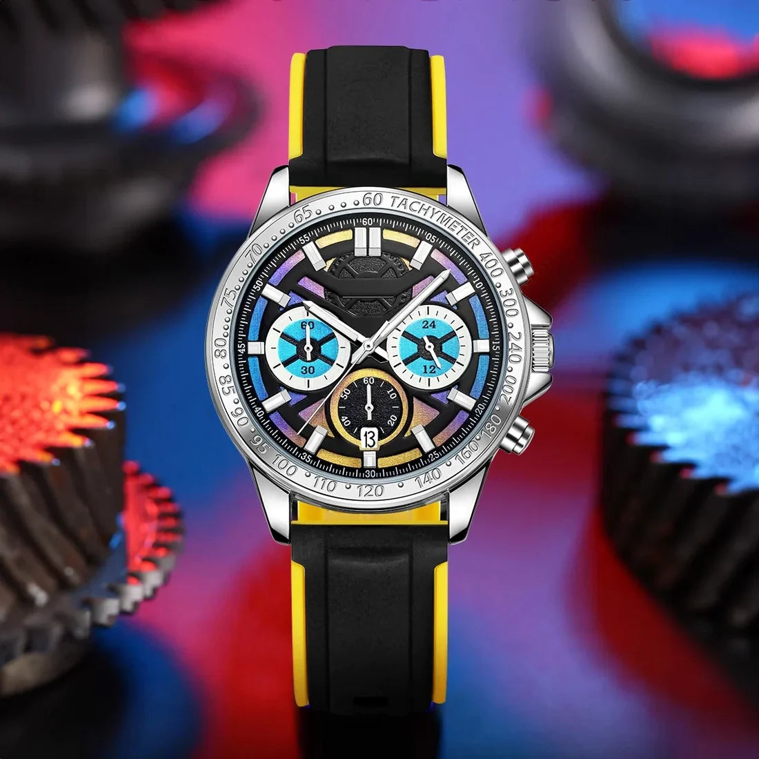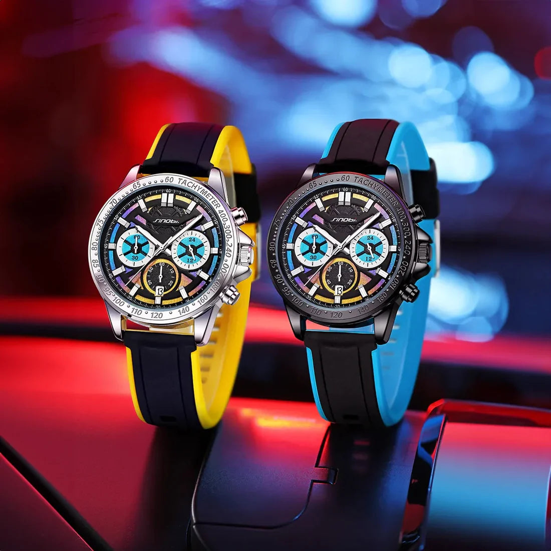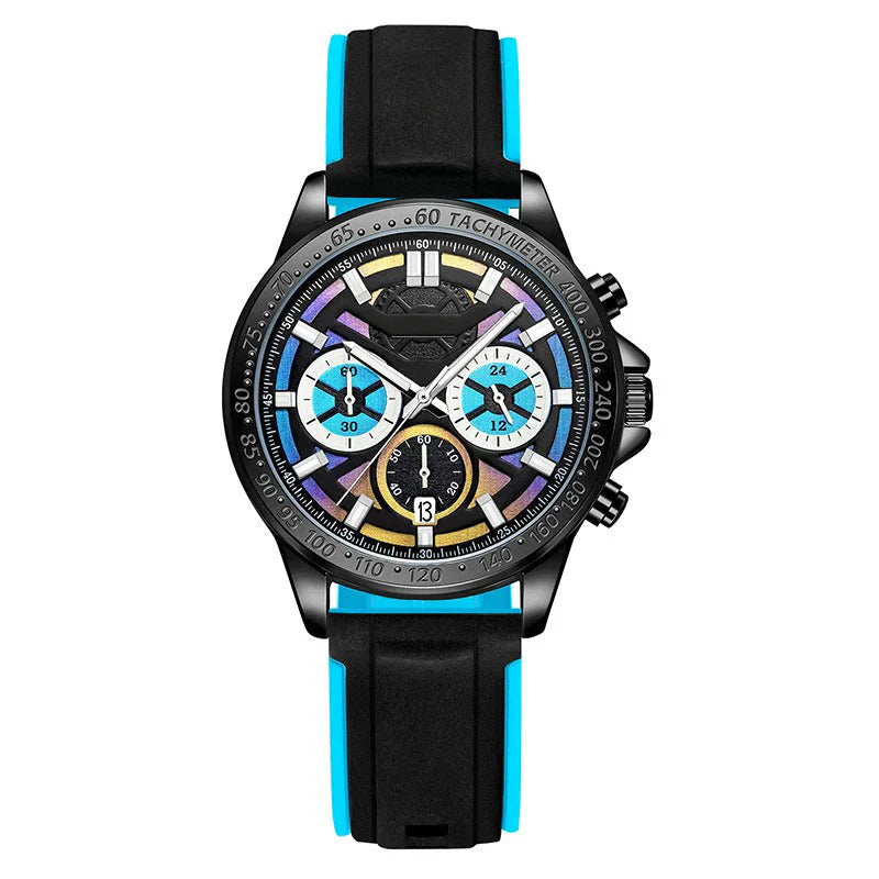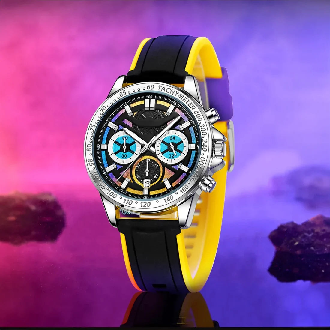 Adrenalin tutkunları ve dikkat çekici bir stil arayanlar için tasarlanan bu model, spor ruhunu modern çizgilerle birleştiriyor. Canlı renkli silikon kordonlar, dayanıklı kasa yapısıyla buluşarak hem şıklık hem konfor sunar. Kronograf detayları, hassas ölçüm imkânı verirken, suya dayanıklı yapısı ile her anınıza eşlik eder. İster şehirde ister doğada, bu saat enerjinizi bileğinize yansıtır.