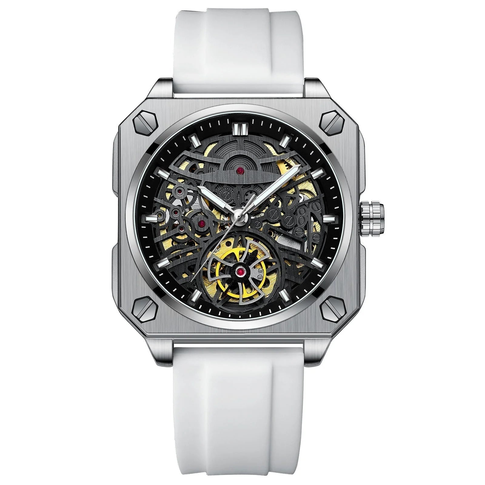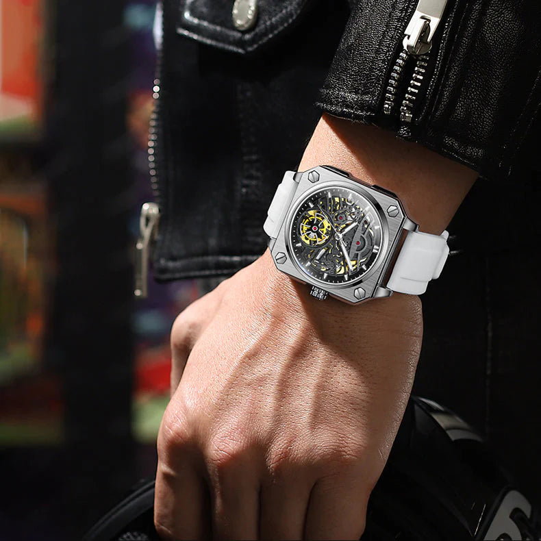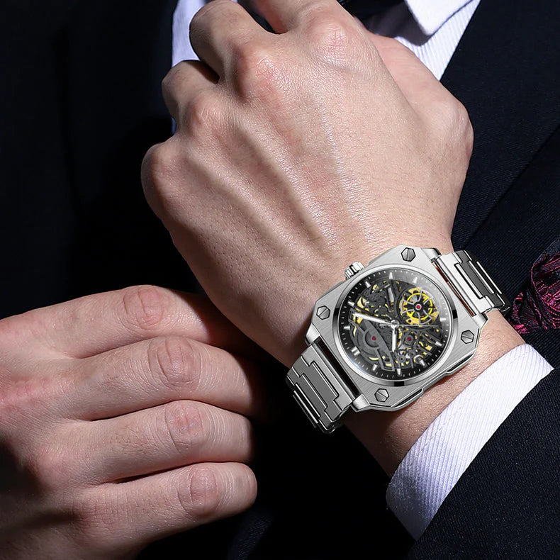 Açık kadranlı, kare kasalı tasarım net bir duruş sunar. Metal bilezik ve belirgin indeksler günlük kullanımda sağlamlık ve okunabilirlik sağlar; sade ama karakterli bir model.